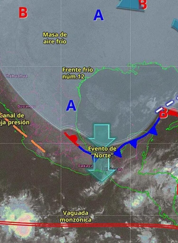 Ante el Frente Frío No. 12 y el evento de Norte en el territorio oaxaqueño, se prevé un descenso significativo de temperatura a partir del martes 4 de noviembre, con vientos de hasta 35 km/h y sensación térmica de hasta -5 °C en zonas altas.