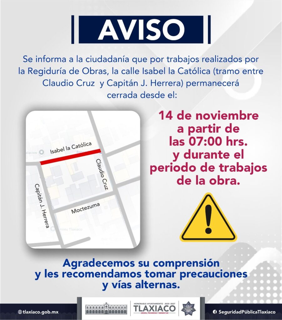 COMUNICADO POR LA DIRECCIÓN DE VIALIDAD MUNICIPAL Tlaxiaco, Oaxaca; a 13 de noviembre de 2025 COMUNICADO POR LA DIRECCIÓN DE VIALIDAD MUNICIPAL AL 13 DE NOVIEMBRE DE 2025. ¡Por una Ciudad Segura!