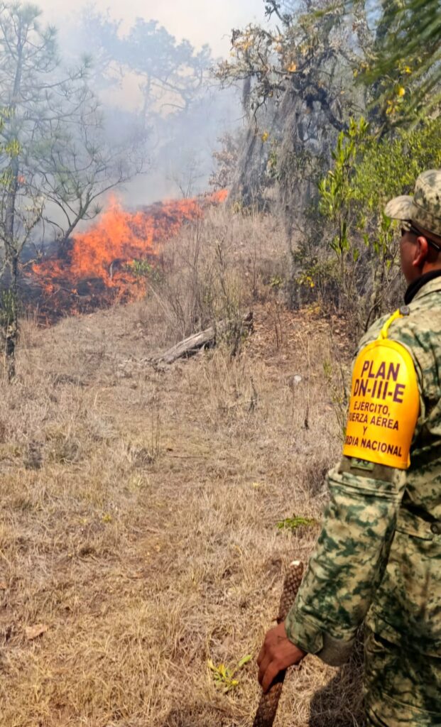 Actualización: Llega apoyo del 95o. Batallón de Infantería, con 84 elementos con equipo contra Incendios Forestales.