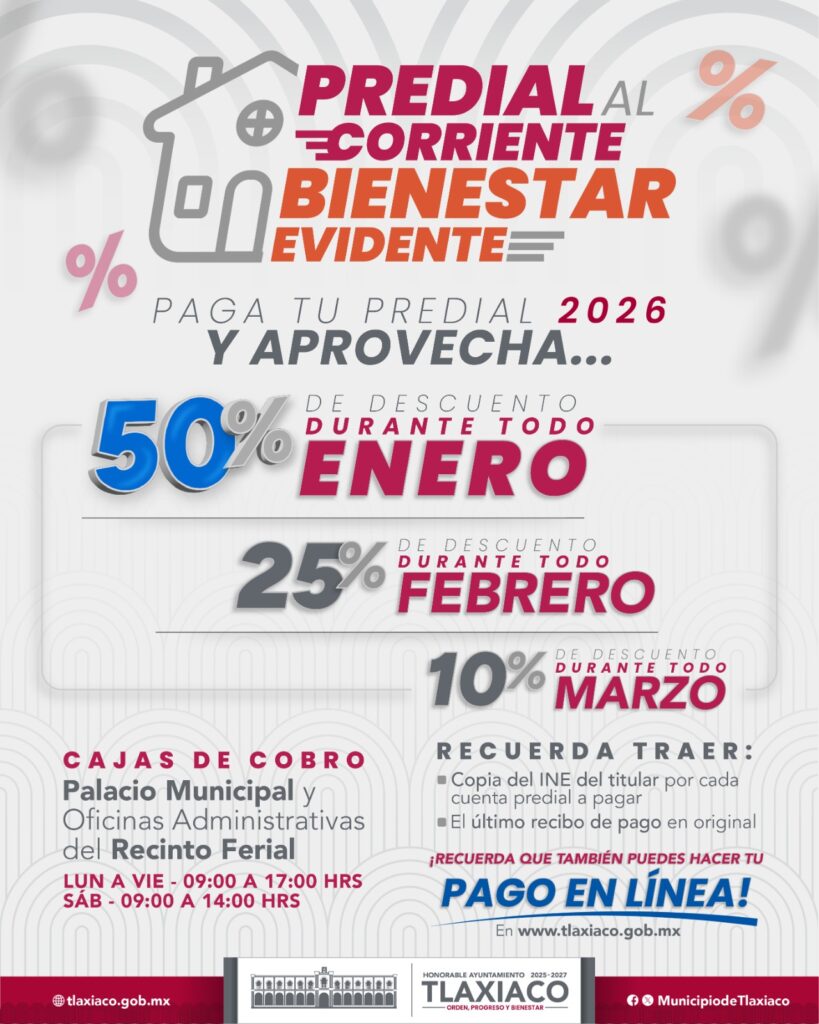 EL H. AYUNTAMIENTO, INVITA A LA CIUDADANÍA A REALIZAR EL PAGO DEL IMPUESTO PREDIAL 2026