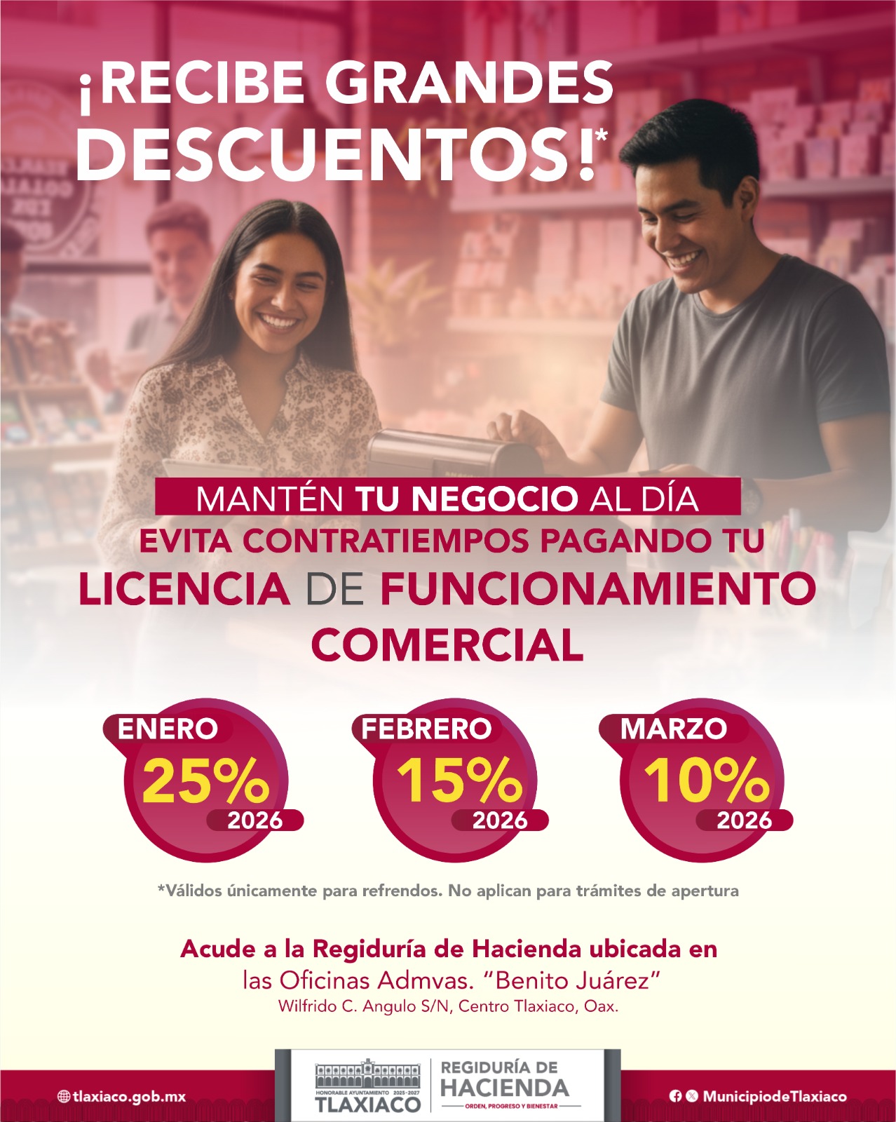 EL H. AYUNTAMIENTO INVITA A LAS Y LOS COMERCIANTES A REALIZAR EL PAGO DE SU LICENCIA COMERCIAL 2026