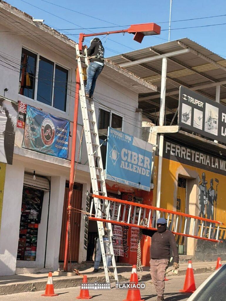 Personal de la Dirección de Alumbrado Público llevó a cabo trabajos de reemplazo de iluminación en la calle Allende, esquina con Claudio Cruz y Capitán J. Herrera, mediante la instalación de lámparas LED de 100 watts.