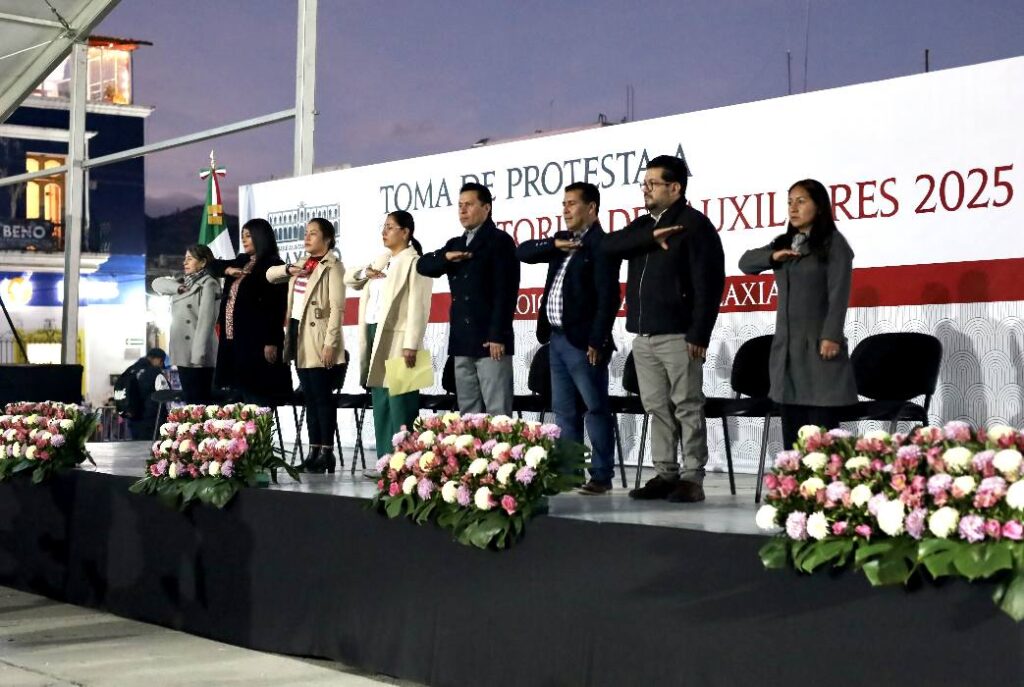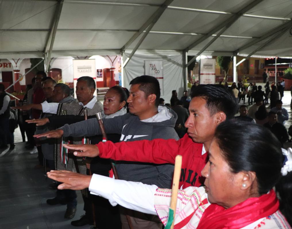 En un acto sin precedentes, el Presidente Municipal de la Heroica Ciudad de Tlaxiaco, Jorge Octavio Hernández Martínez, encabezó la Protesta de Ley para 38 Autoridades Auxiliares del Municipio. La ceremonia pública se llevó a cabo en la emblemática Plaza de la Constitución, con un acto cívico que contó con la participación de la Banda Sinfónica de Tlaxiaco, la Escolta de la Policía Municipal y la Banda de Guerra Oficial Halcones de Tlaxiaco.