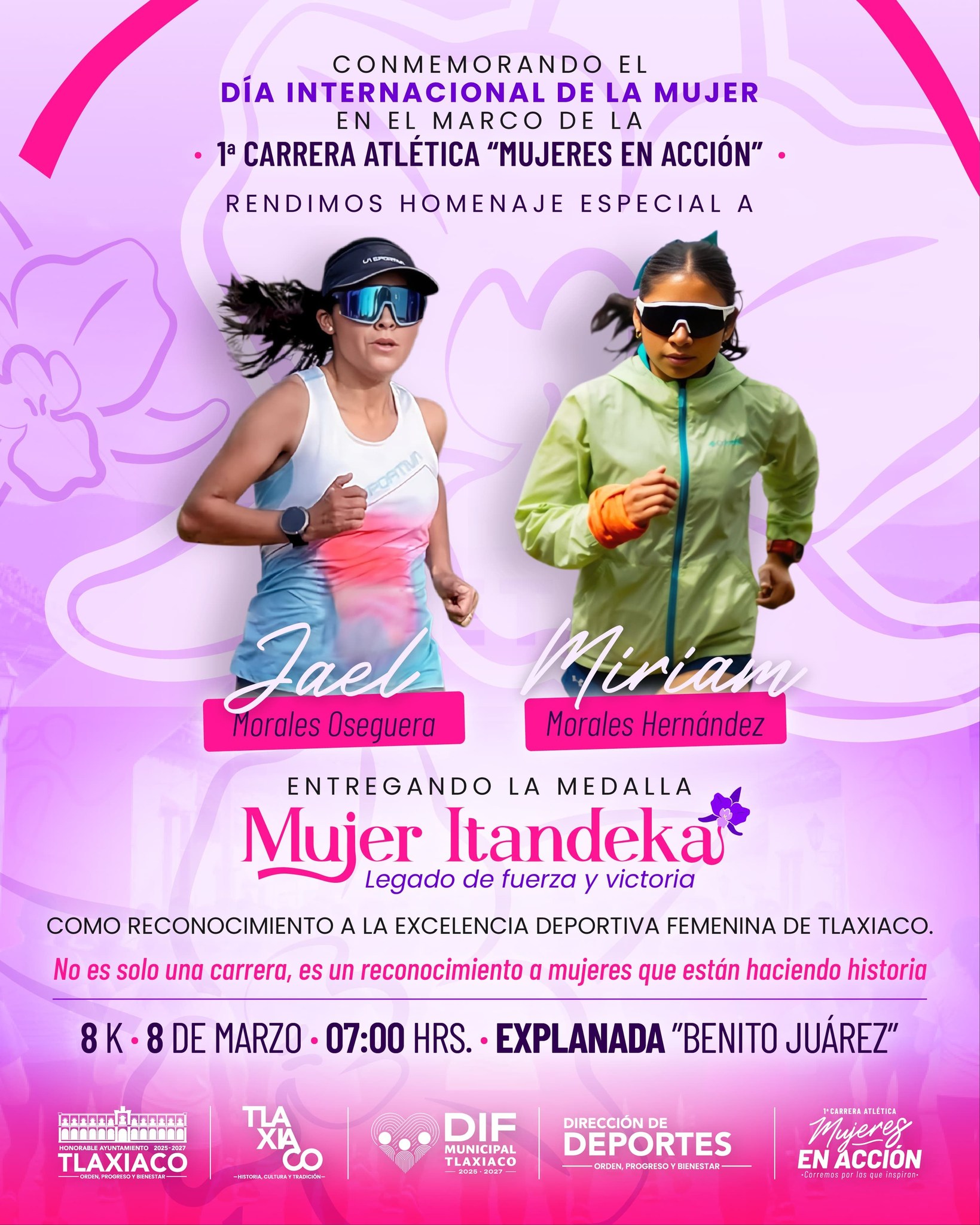 Conmemorando el Día Internacional de la Mujer, en el marco de la Carrera “Mujeres en Acción” se realizará un emotivo homenaje a dos atletas tlaxiaqueñas, orgullosamente medallistas internacionales.