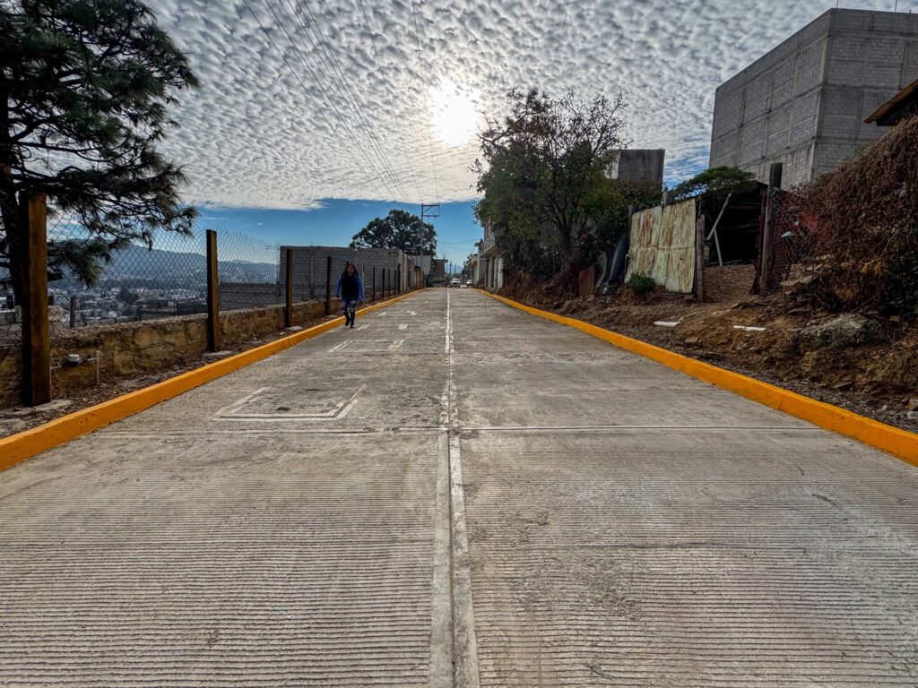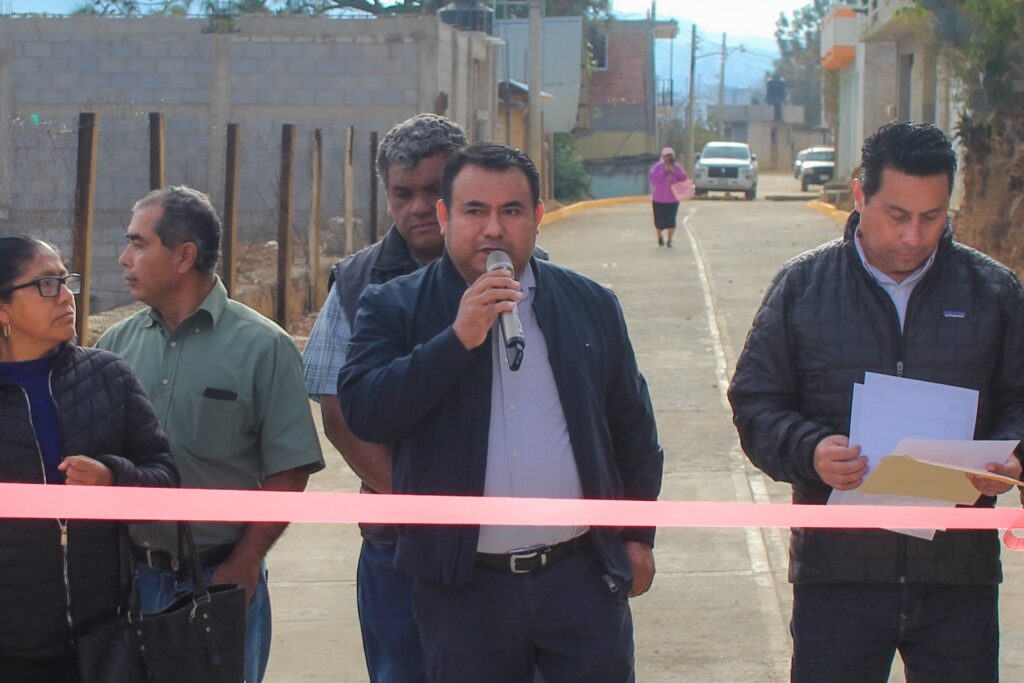 Este día, el presidente municipal de Tlaxiaco, Jorge Octavio Hernández Martínez, inició una jornada de inauguraciones acompañado por integrantes del Cabildo. Las actividades comenzaron con la inauguración de la obra de pavimentación con concreto hidráulico en la calle Oyamel, ubicada en el Núcleo Rural Colonia del Bosque, una acción que beneficia de manera directa a más de 200 habitantes, mejorando su movilidad y elevando su calidad de vida para el desarrollo de sus actividades cotidianas.