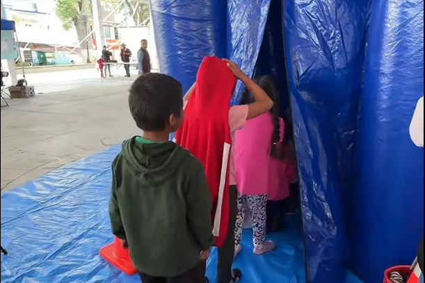 La Caravana DIF llegó a Tlaxiaco y este día se instaló en la Explanada Municipal para brindar atención a niñas y niños a través de diversos módulos de servicios como nutrición, odontología y más. Uno de los principales atractivos para los pequeños fue el planetario.