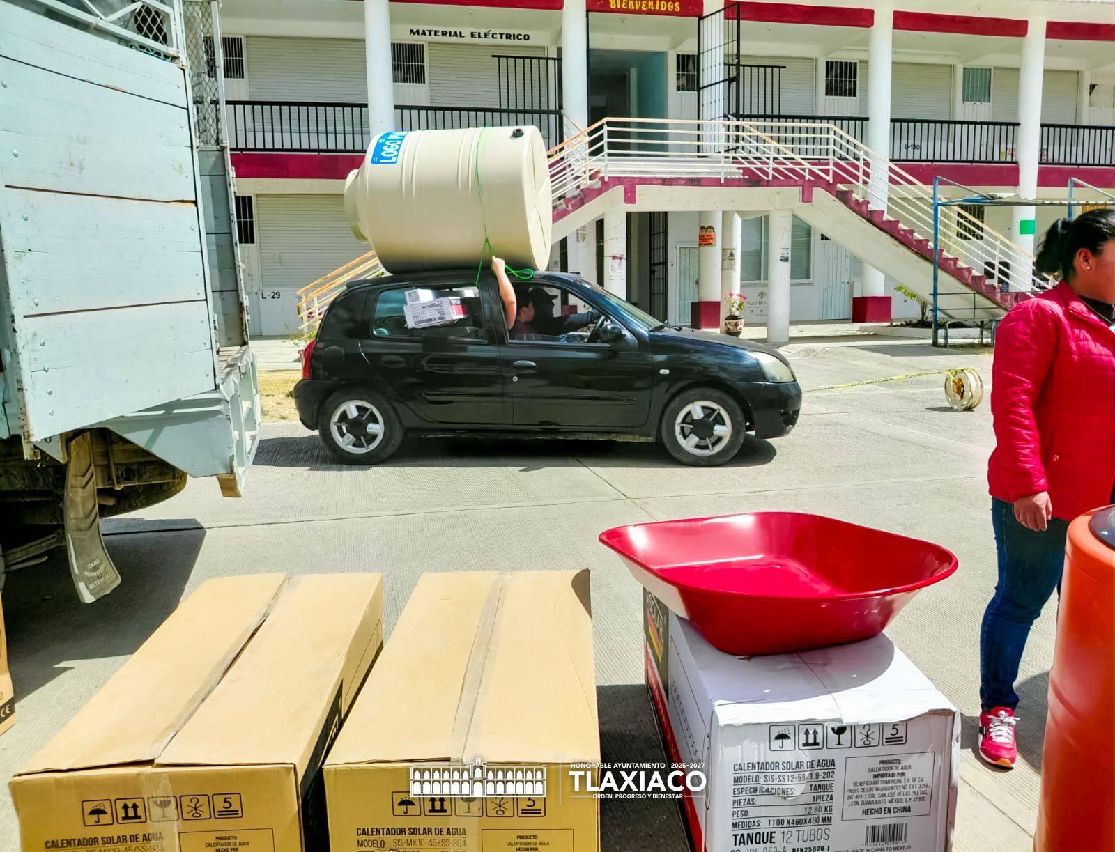 Entre los apoyos otorgados se encuentran motosierras, fumigadoras, kits de herramientas, motobombas, mangueras, láminas, bases para tinaco, calentadores y tinacos, con el objetivo de atender necesidades prioritarias y fortalecer las condiciones de los hogares.