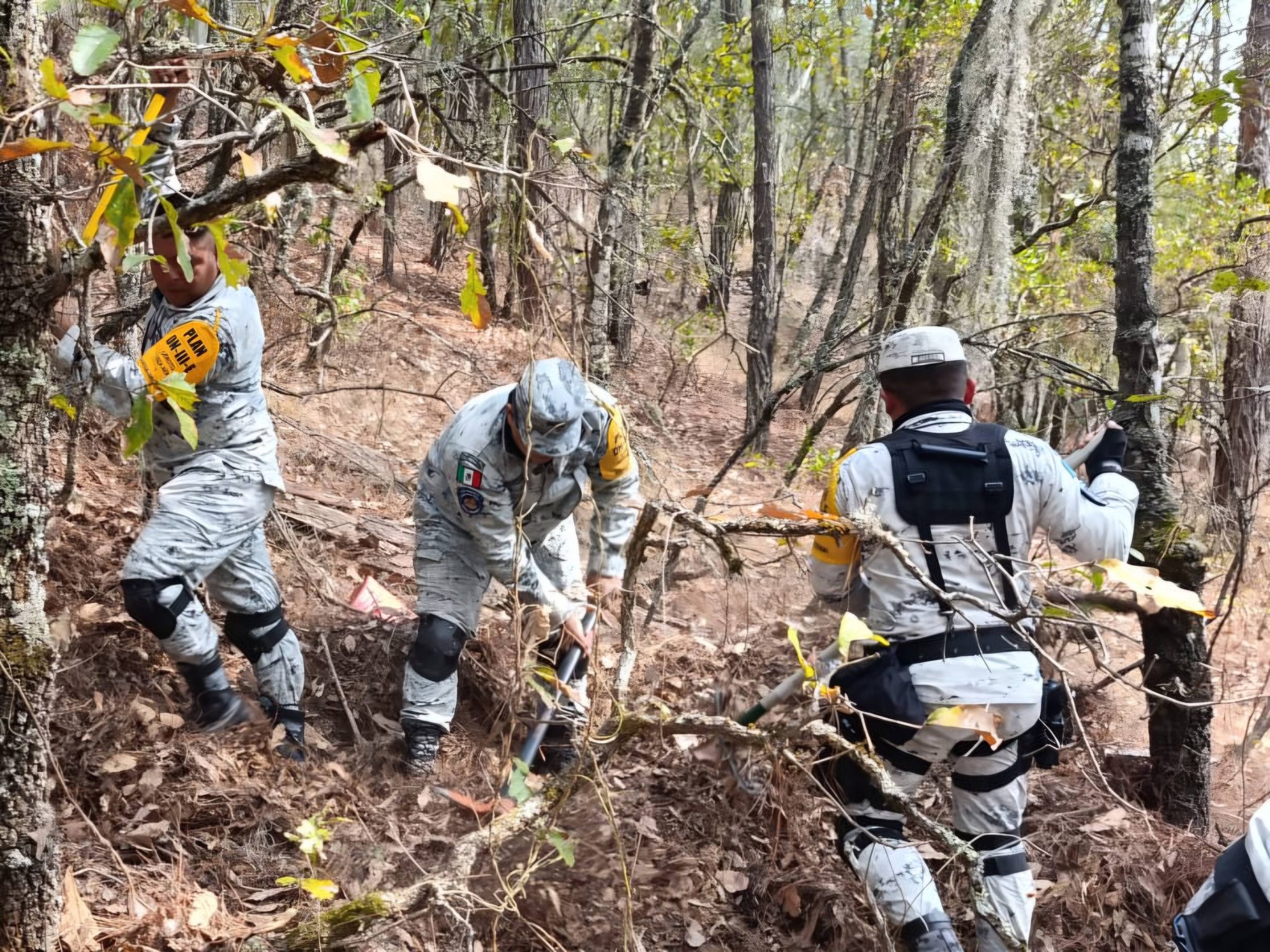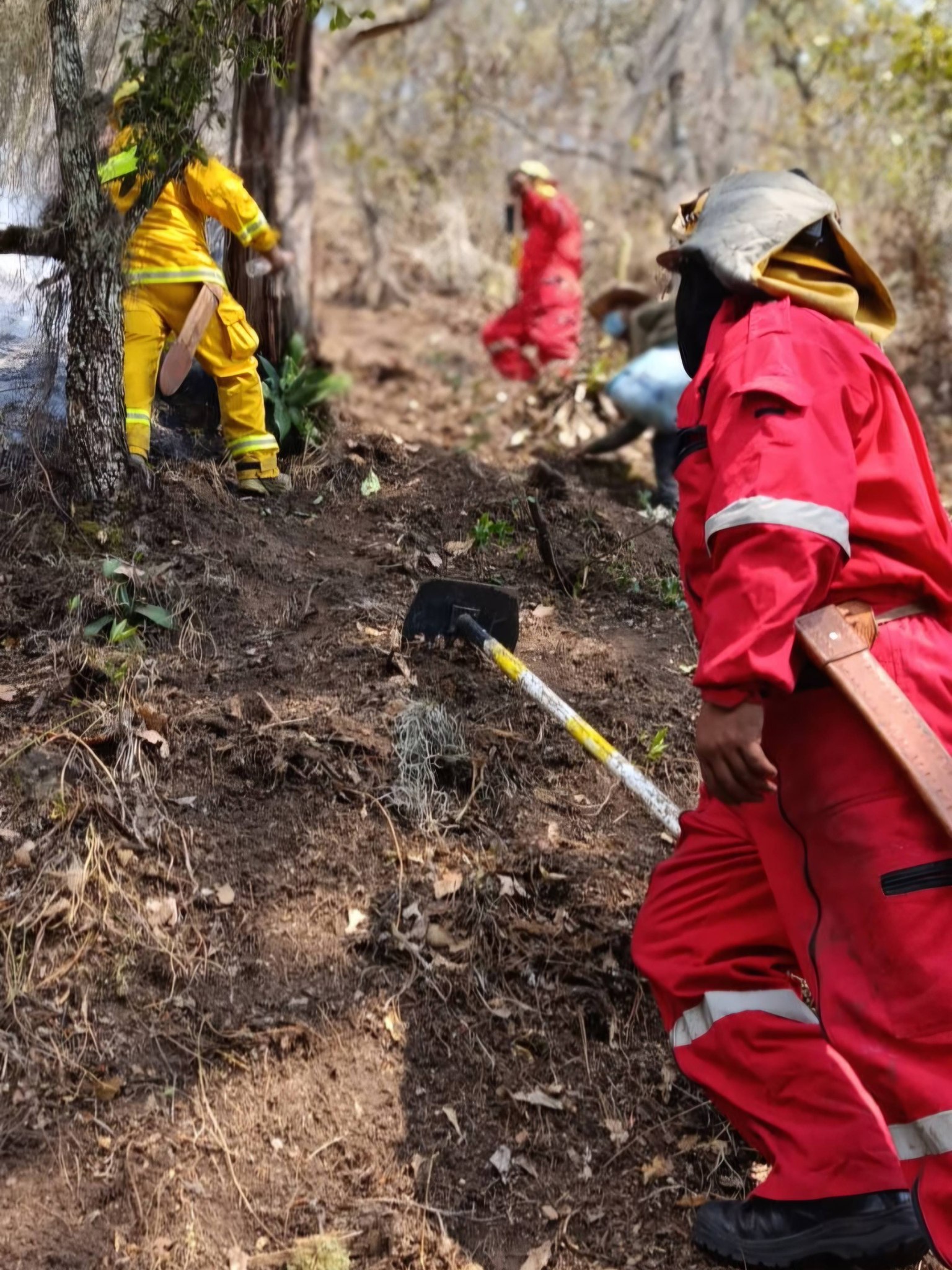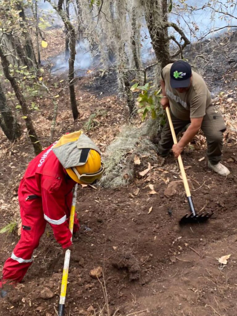 En las labores participan de manera coordinada vecinos de la comunidad y Guardia Nacional, trabajando de forma conjunta para controlar el siniestro y evitar su propagación.