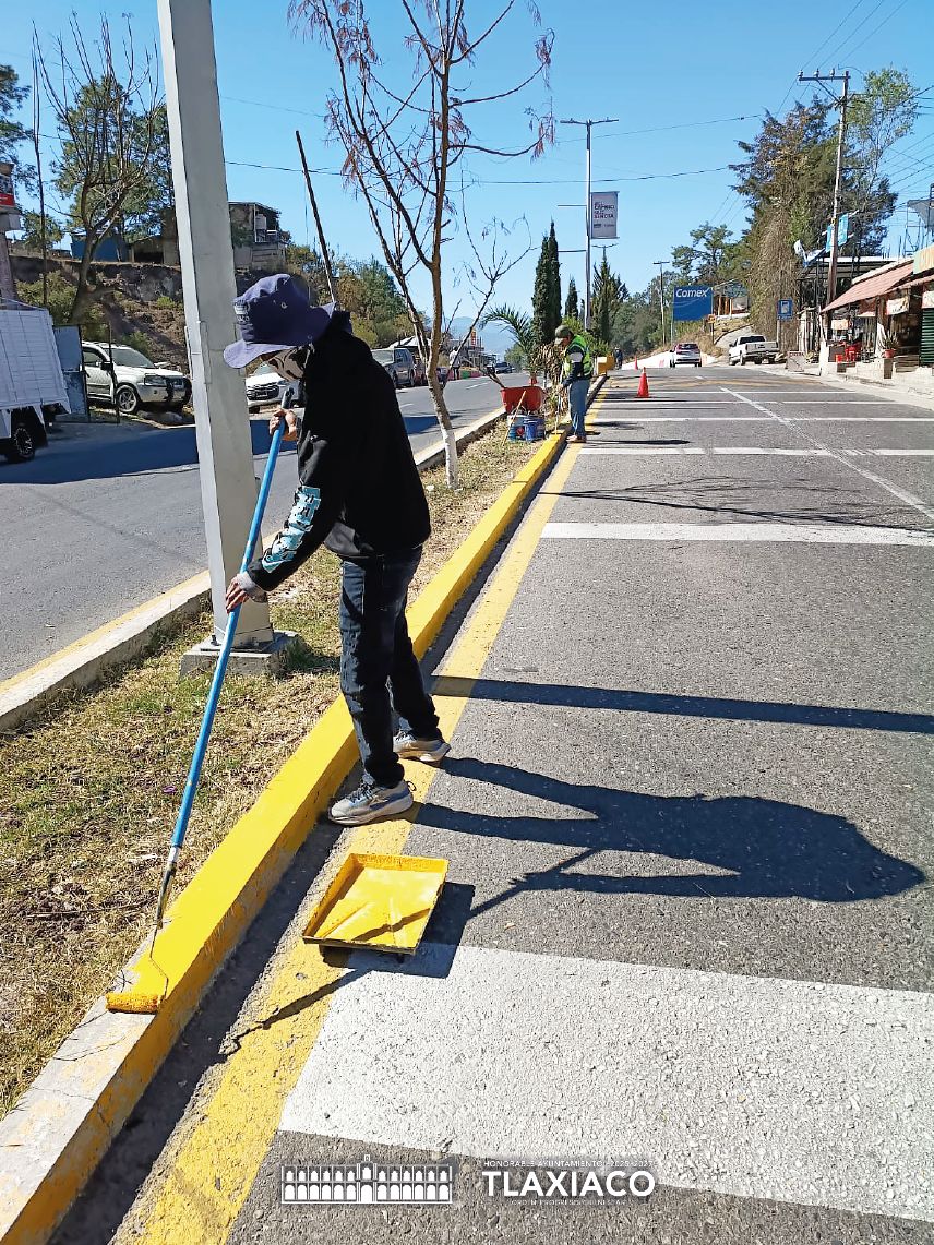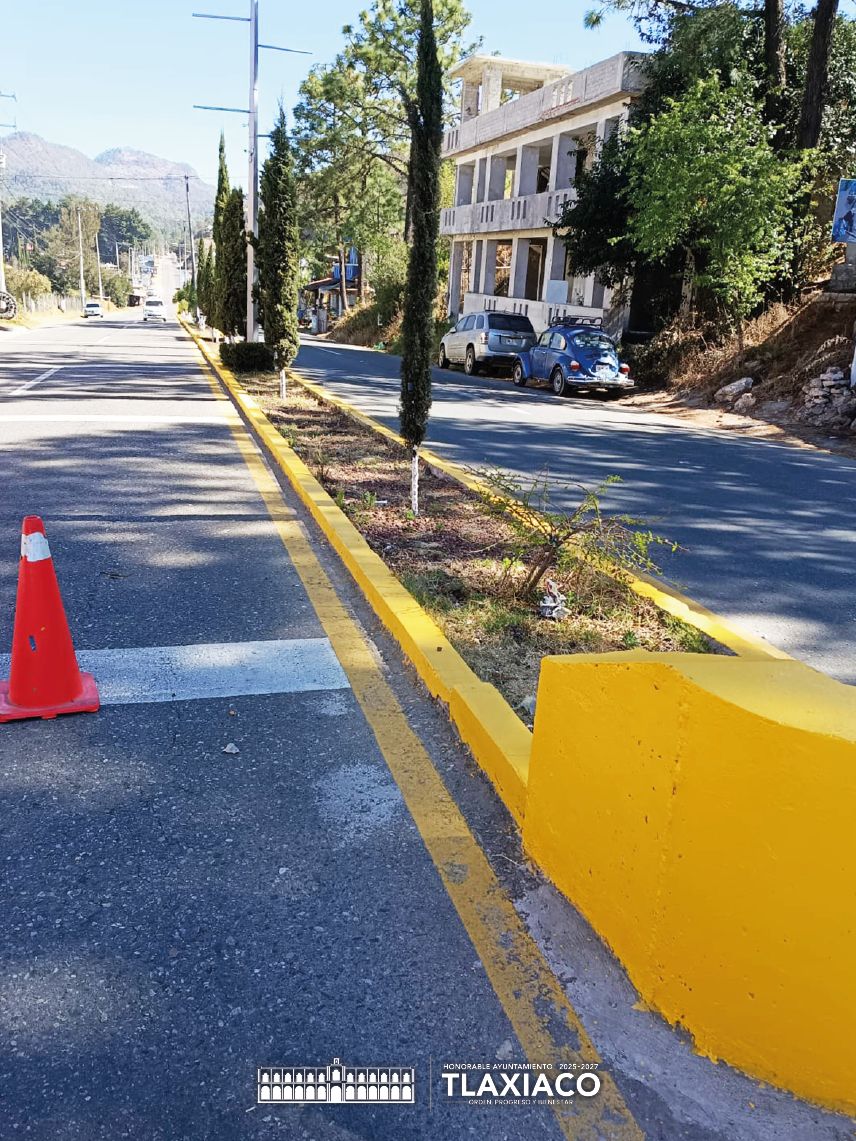El personal de la Dirección de Servicios Públicos Municipales realizó la pintura de la guarnición de la jardinera central del bulevar Porfirio Díaz, a la entrada y salida de Oaxaca, como parte del programa de mejora y mantenimiento constante de espacios públicos.