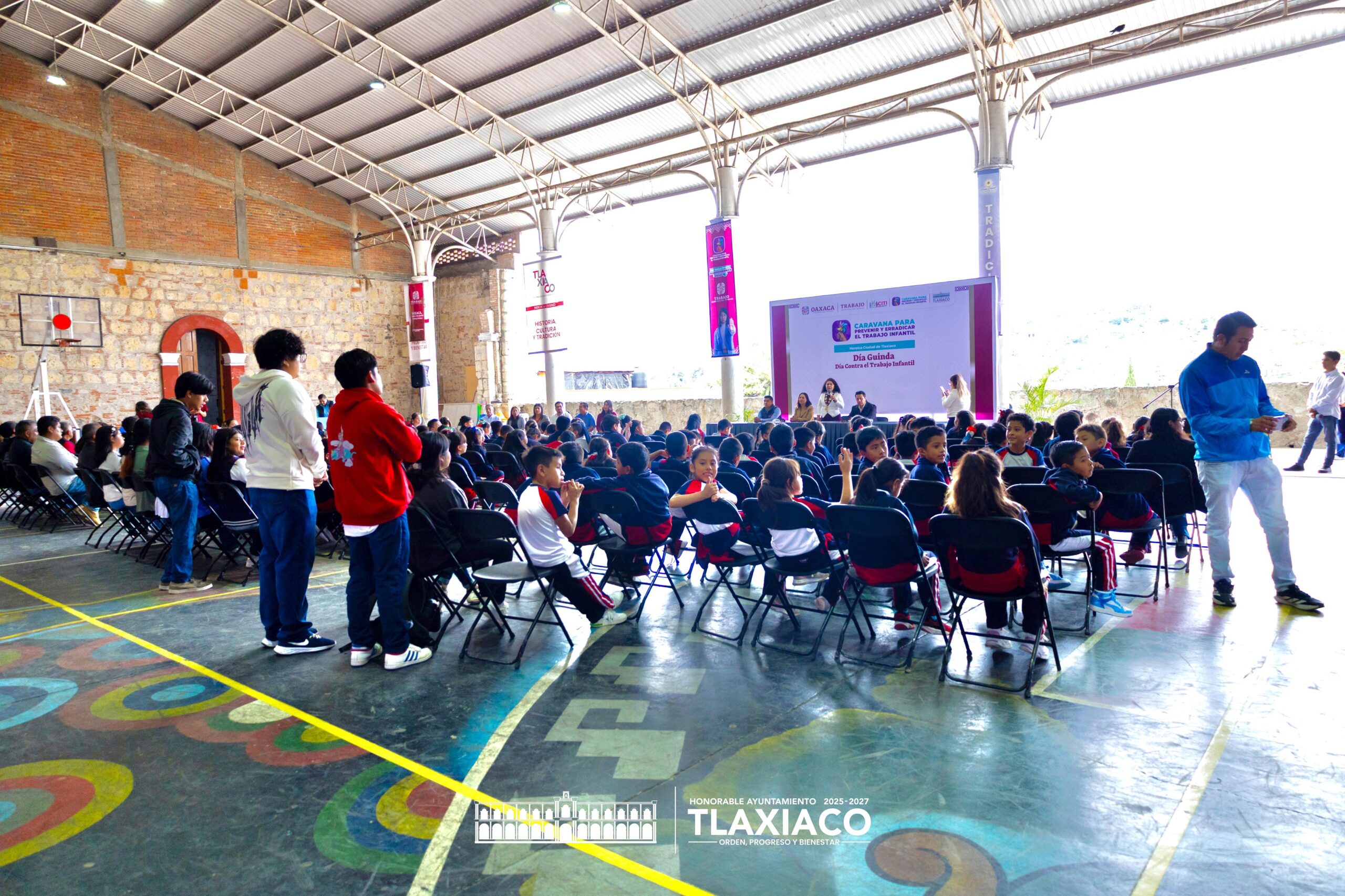En el marco del Día Guinda, conmemoración enfocada en sensibilizar y fortalecer las acciones para erradicar el trabajo infantil, el H. Ayuntamiento de Tlaxiaco, en coordinación con la Secretaría del Trabajo, llevó a cabo una caravana informativa y recreativa en el Auditorio municipal.