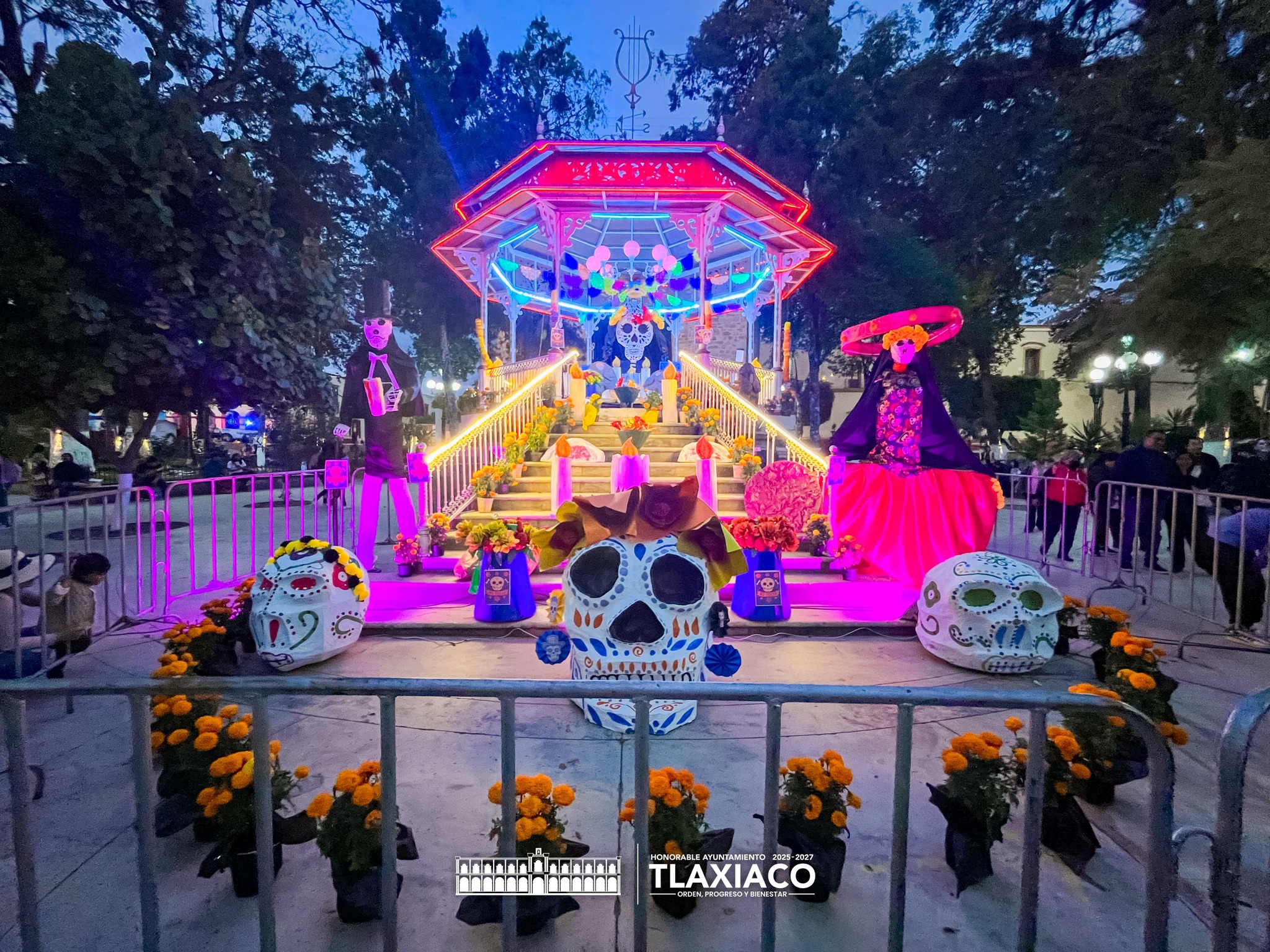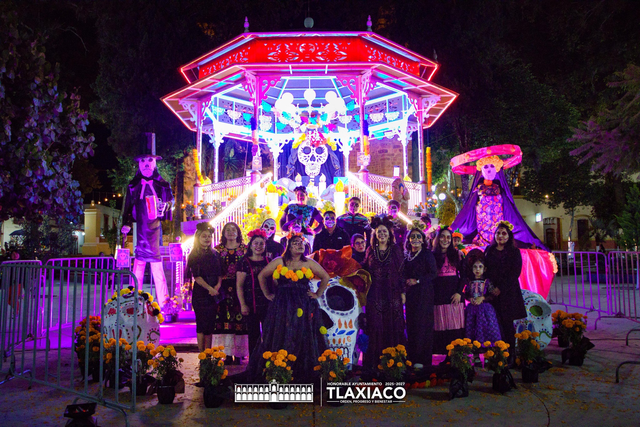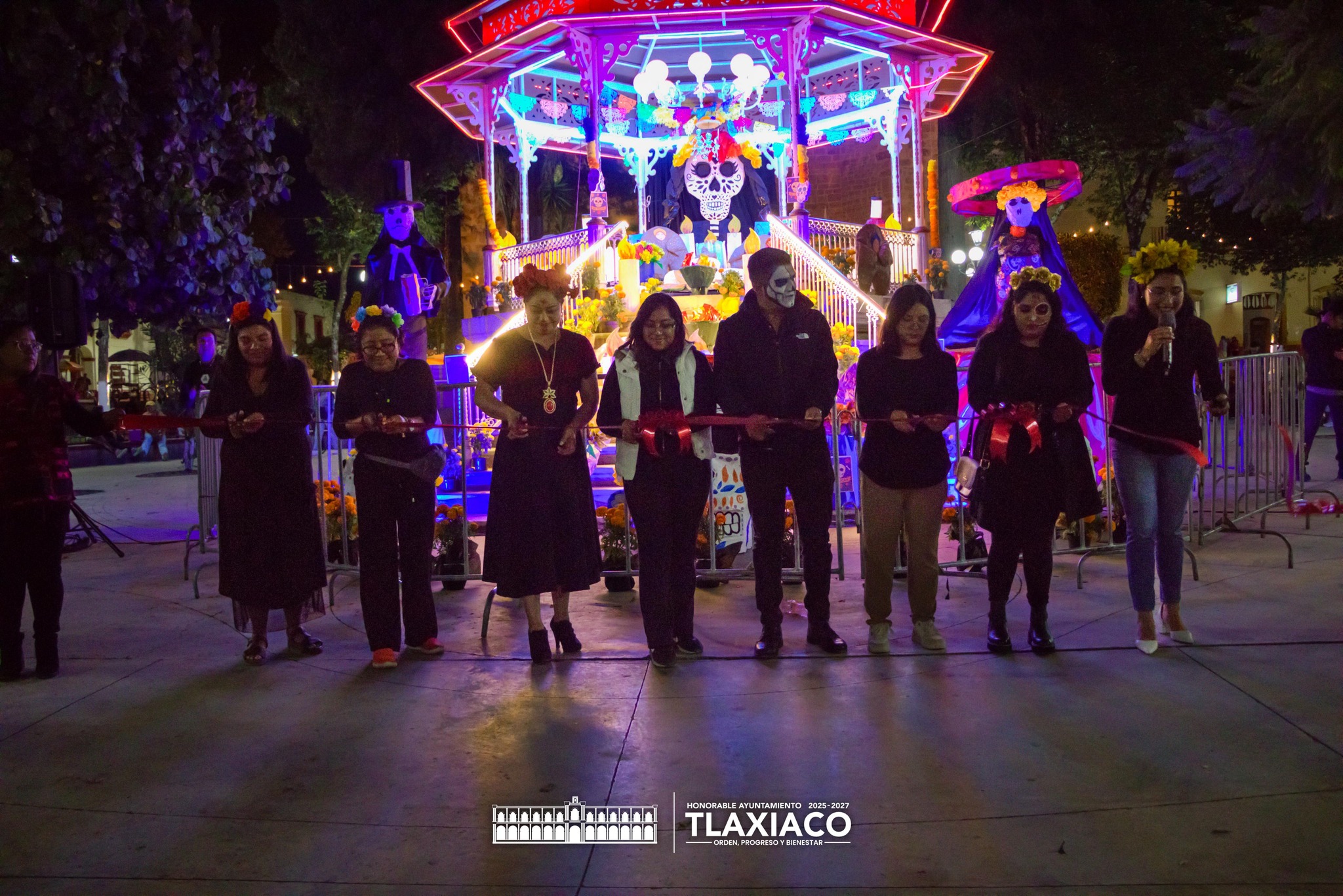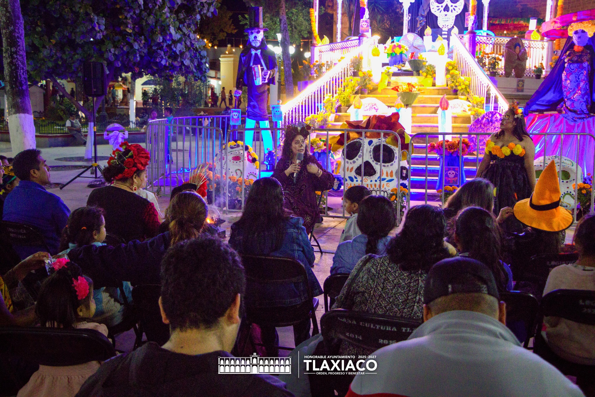 Tras el recorrido por las principales calles, las y los participantes se concentraron en el Quiosco Municipal del parque “Porfirio Díaz”, donde se inauguró la Ofrenda Monumental instalada en el lugar. De manera simultánea, se llevó a cabo una sesión de cuenta cuentos para la niñez y padres de familia, con lectura dirigida por la presidenta del DIF, Ixchel Ornelas Hernández.