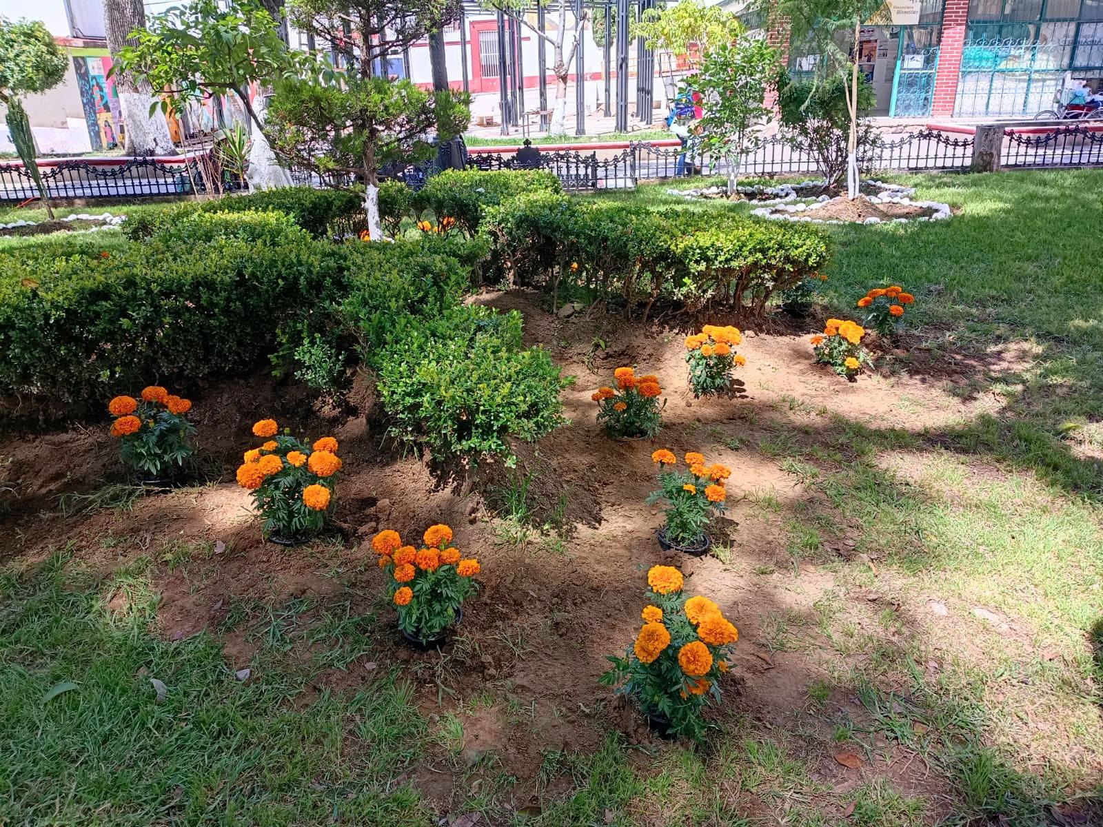 La Dirección de Servicios Públicos Municipales realizó la reparación de los daños al pasto y a los ornamentos de las jardineras del parque municipal. Además, se colocaron flores de cempasúchil que embellecen y adornan este espacio en estas fechas de Todos Santos, en las que mantenemos vivas nuestras tradiciones.